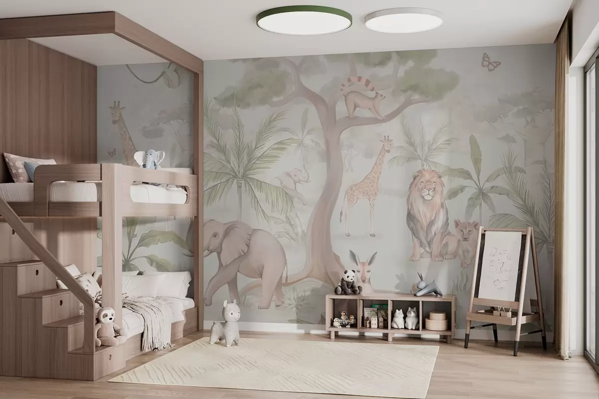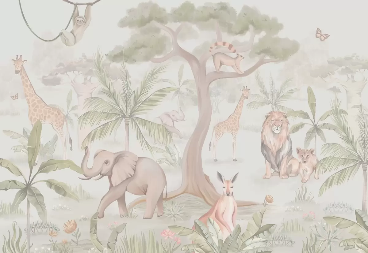 Fototapeedid Panorama džungli loomadega heledates värvides Nr w03444v1