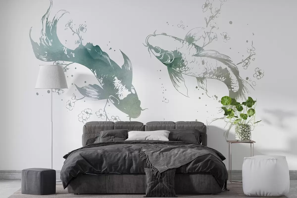 Fototapeedid Akvarell kala, idamaine stiil, kirsipuu, rohelised värvid Nr w03447v2