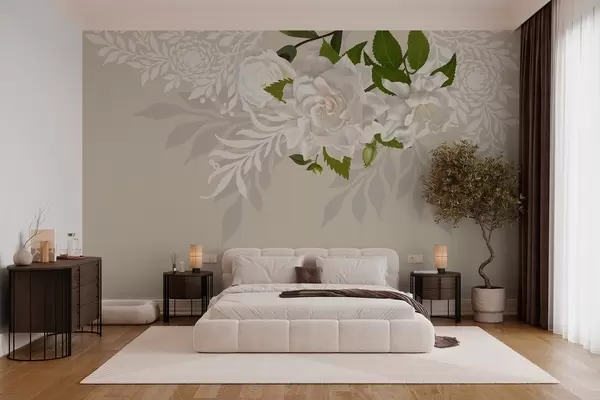 Fototapeedid valged roosid beeži mustriga taustal Nr w03453