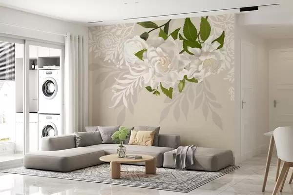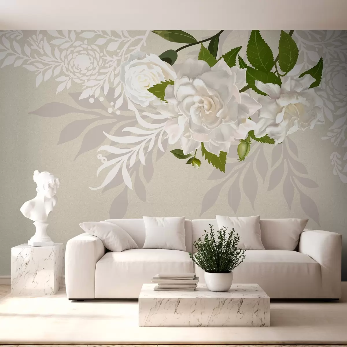 Fototapeedid valged roosid beeži mustriga taustal w03453