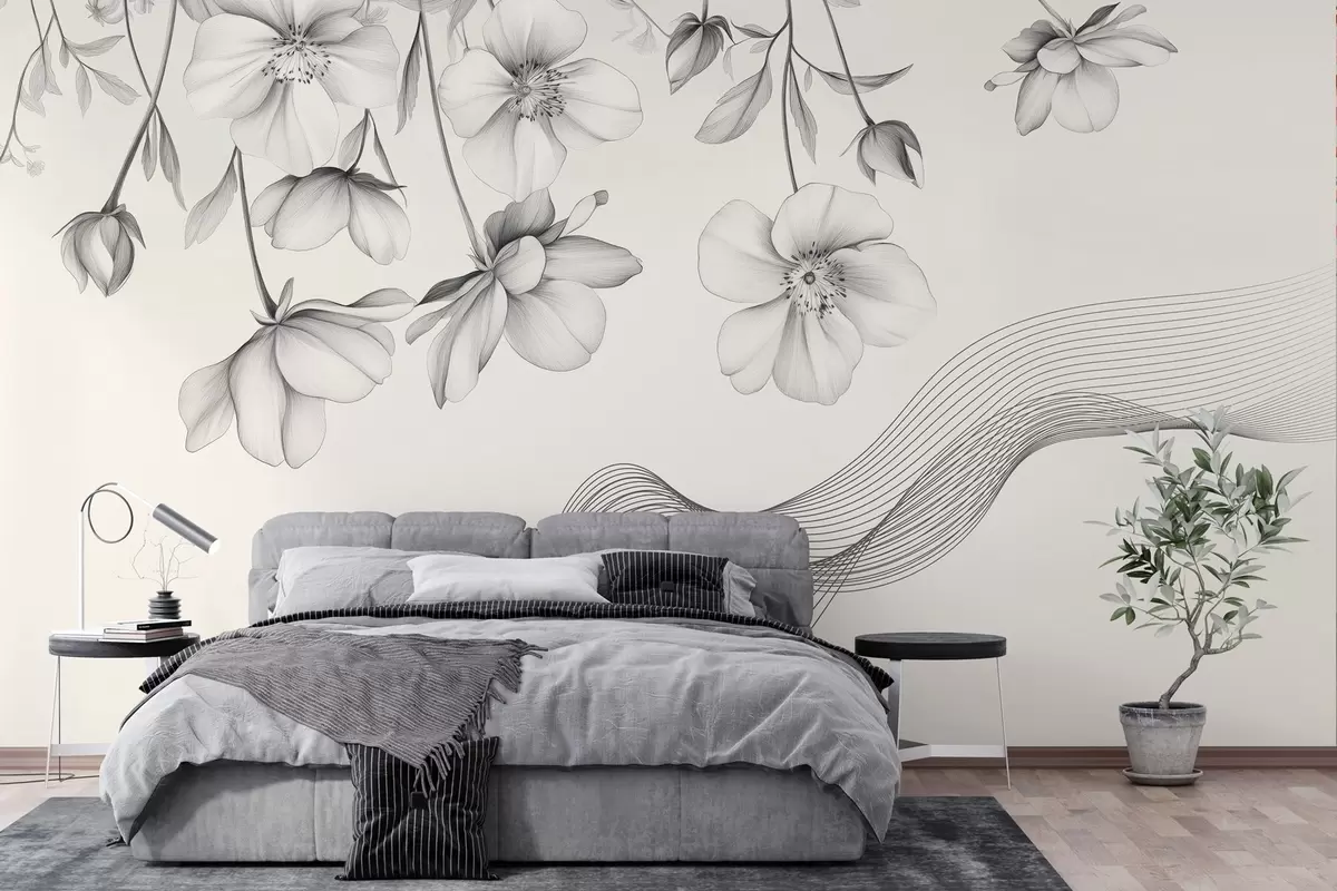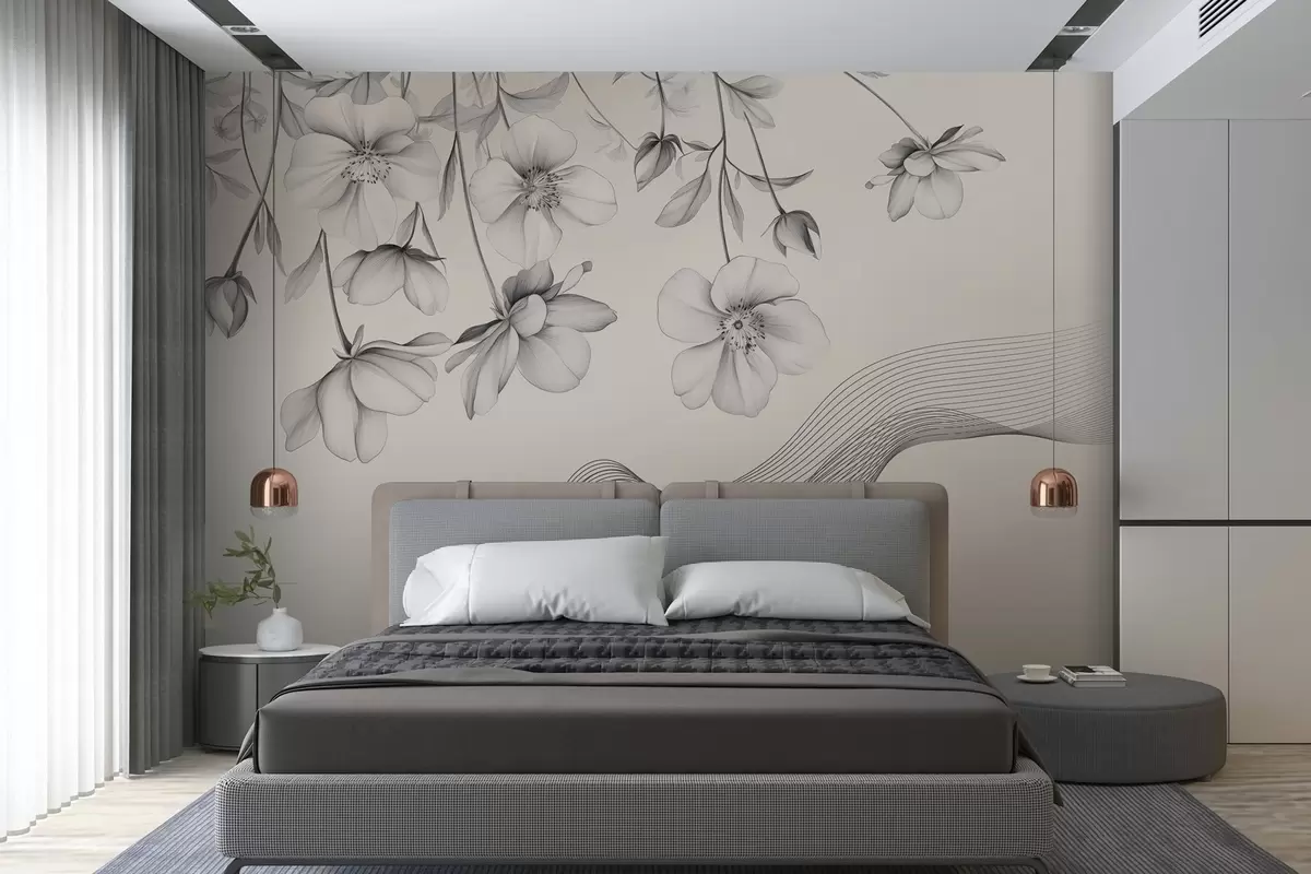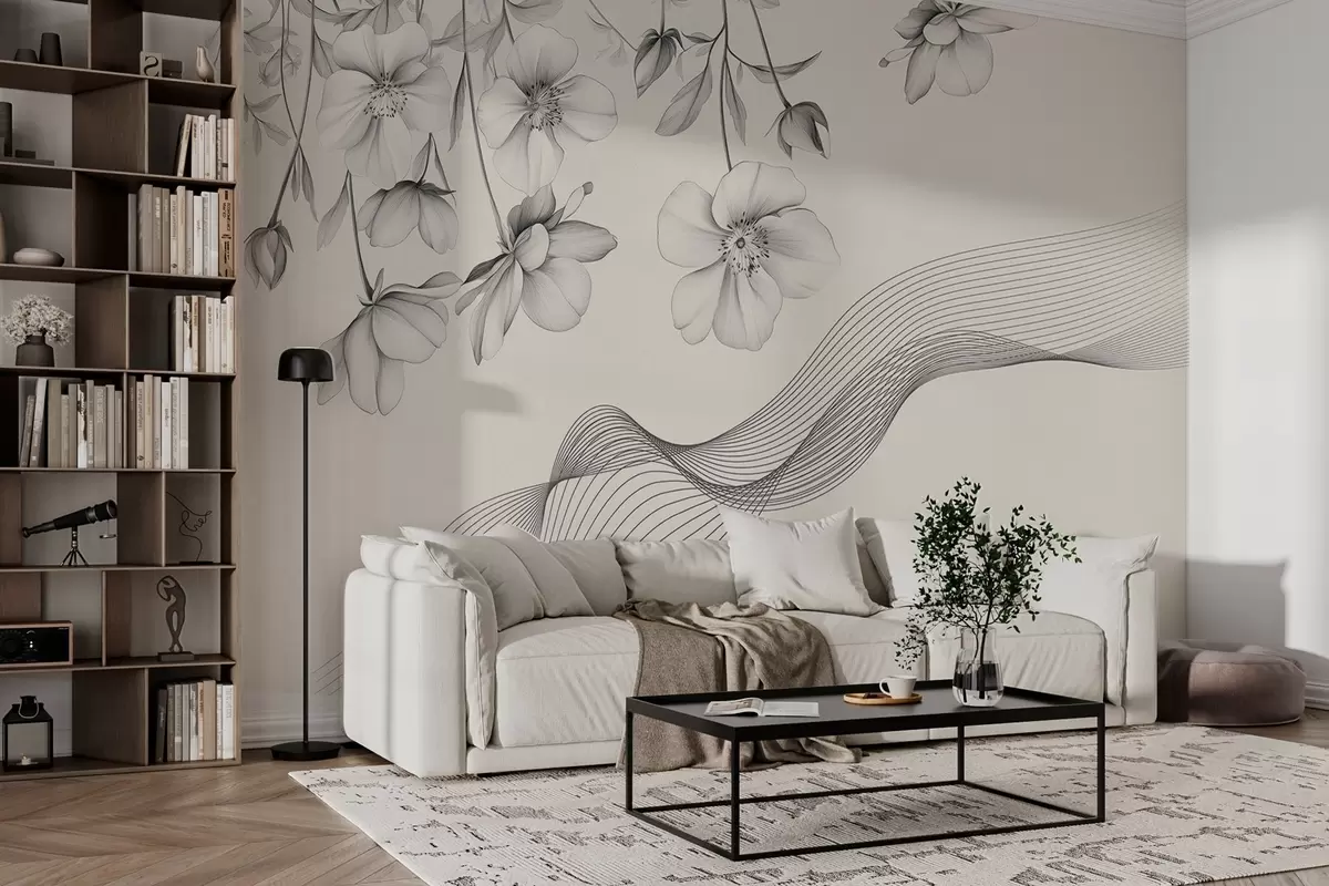 Fototapeedid graafilised lilled ja jooned heledal taustal Nr w03454