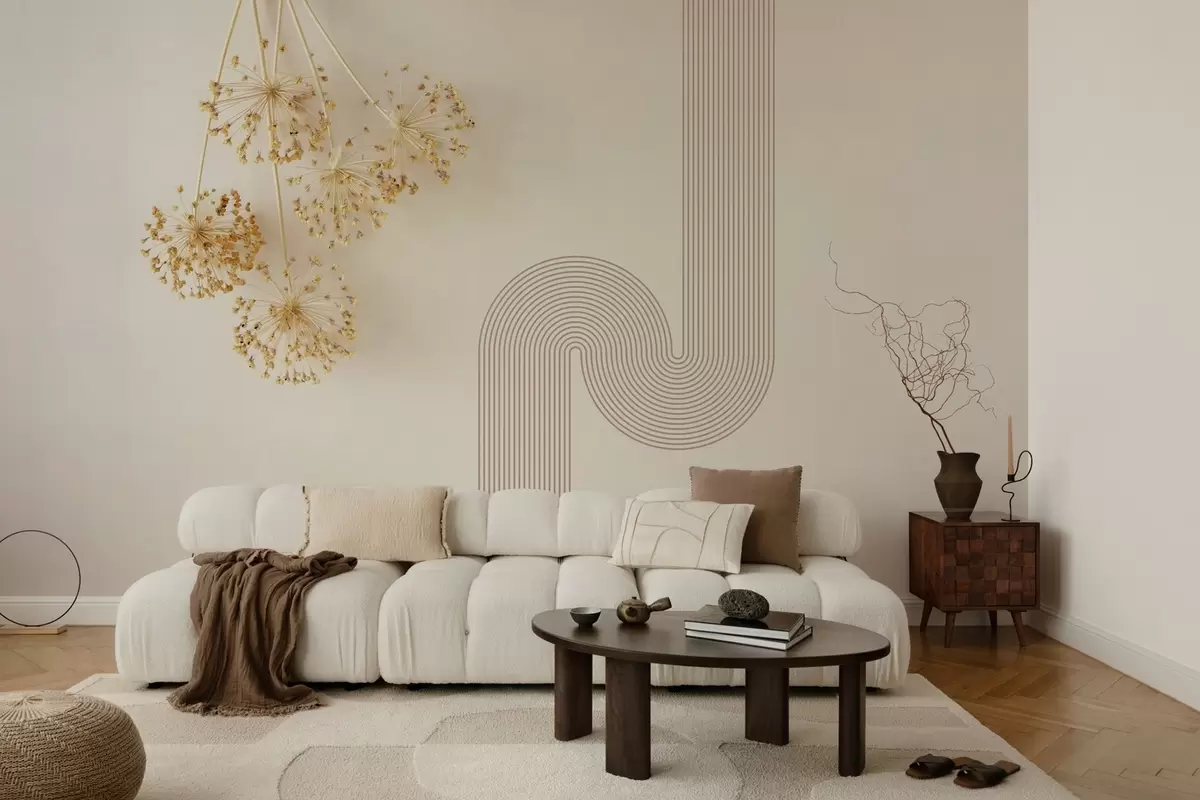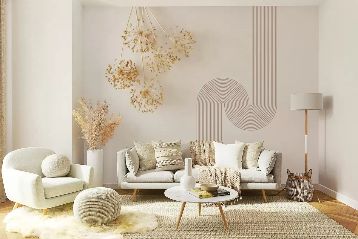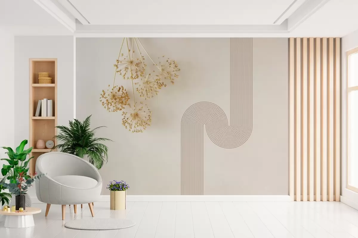 Fototapeedid elegantsed kuivatatud lilled ja jooned beeži toonides Nr w03455