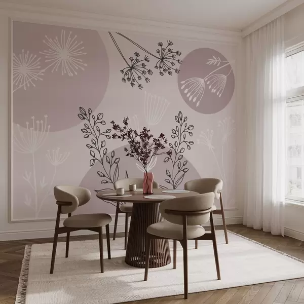 Fototapeedid Abstraktsioon ringide ja roosa värvi taimedega Nr w03483
