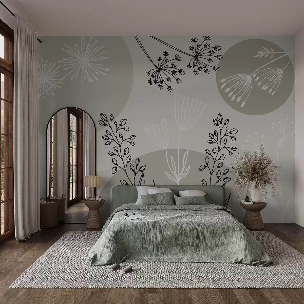 Fototapeedid Abstraktsioon ringide ja rohelistes toonides taimedega Nr w03483v1