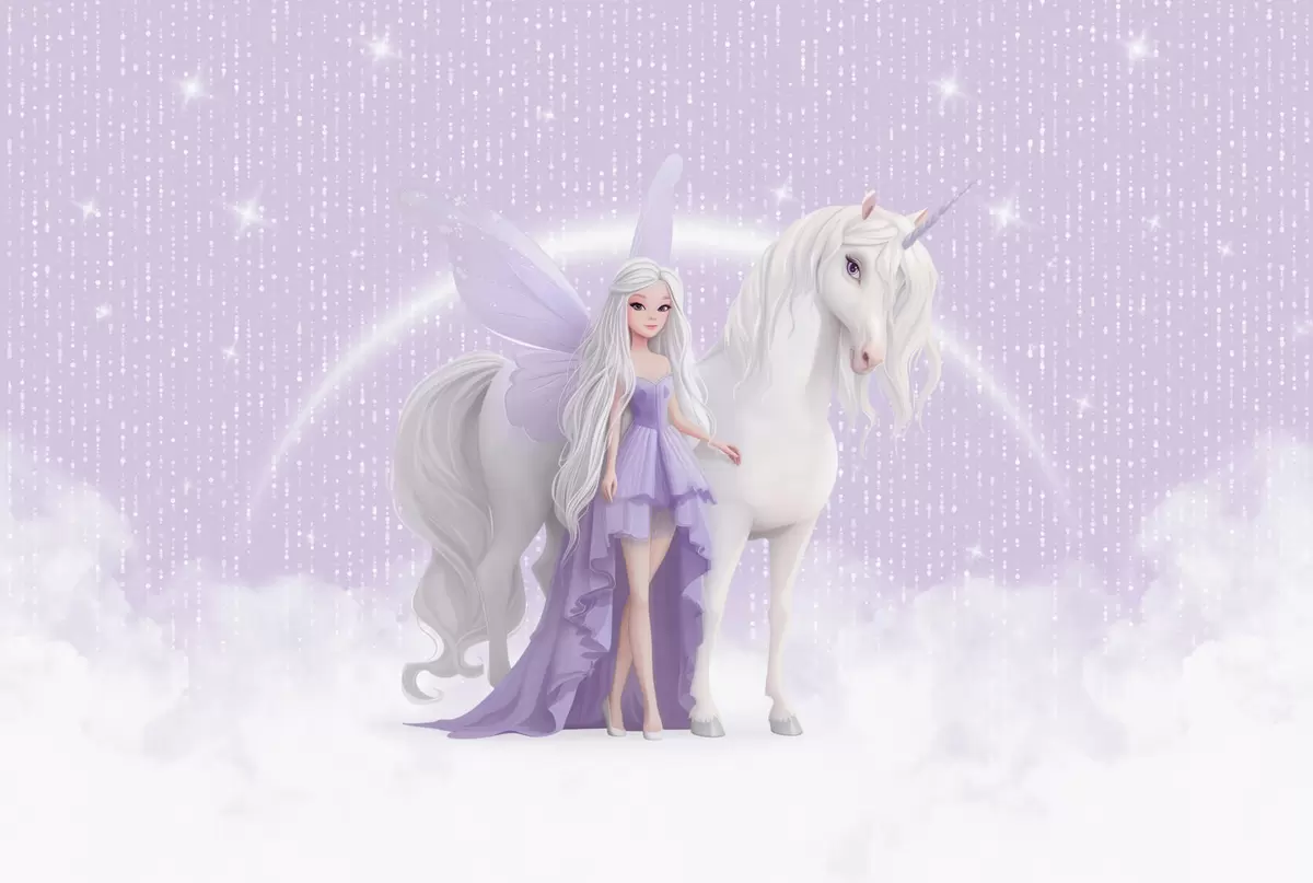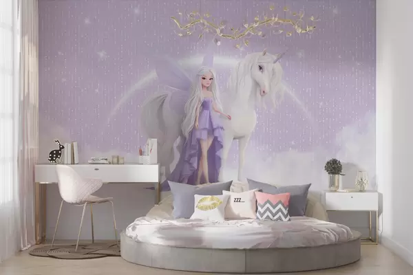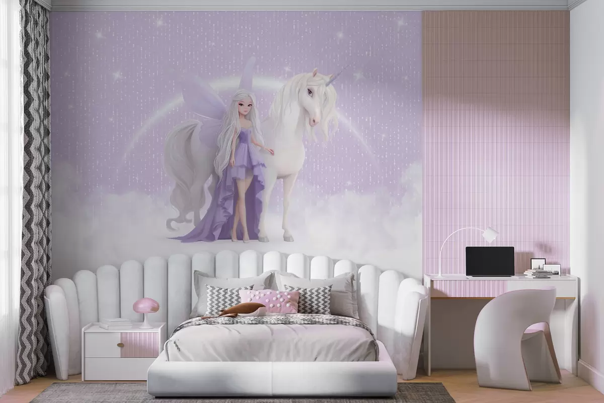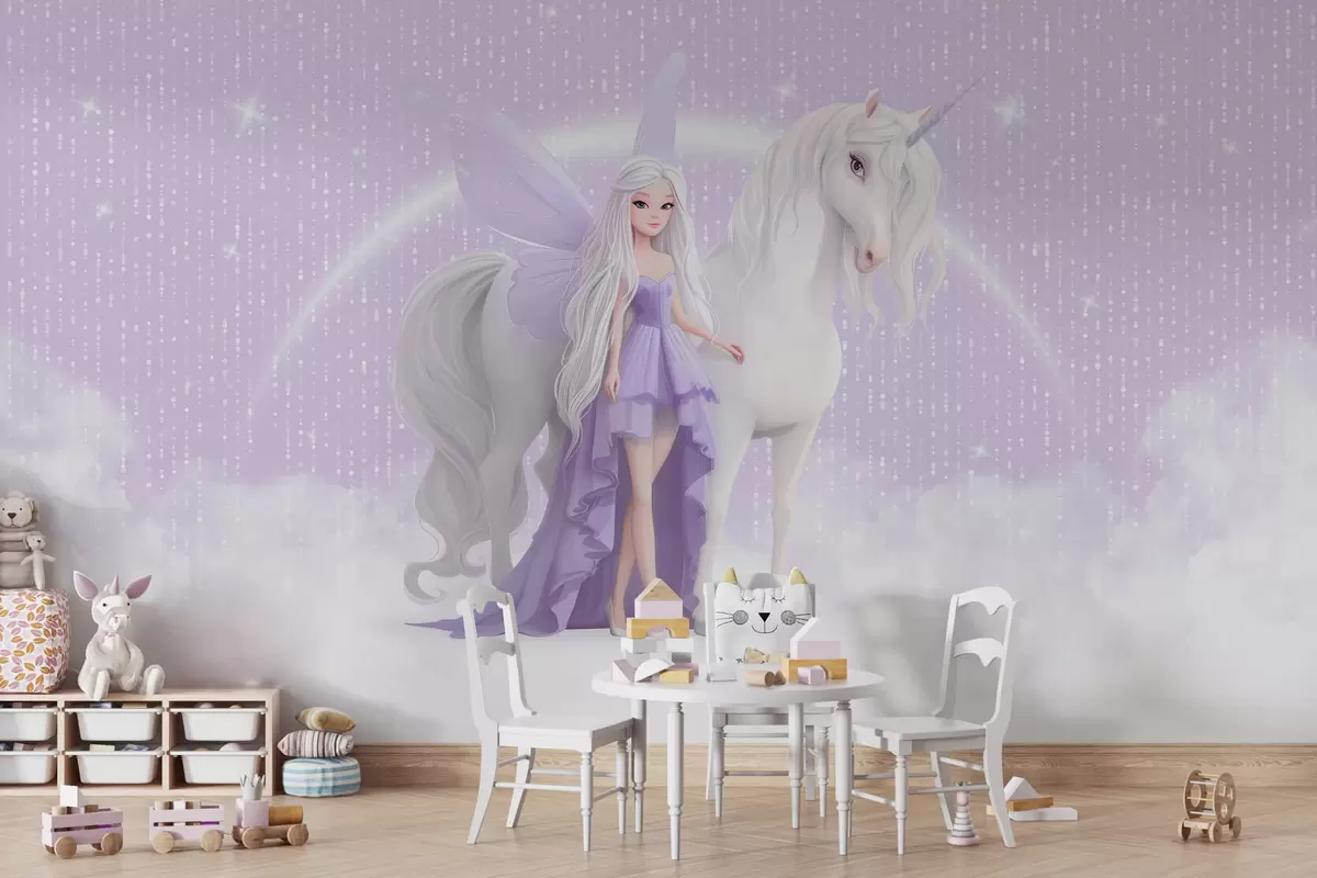 Fototapeedid Ükssarvikuga haldjas pilvede vahel Nr w03527