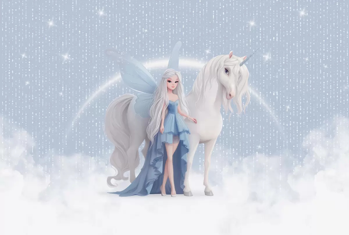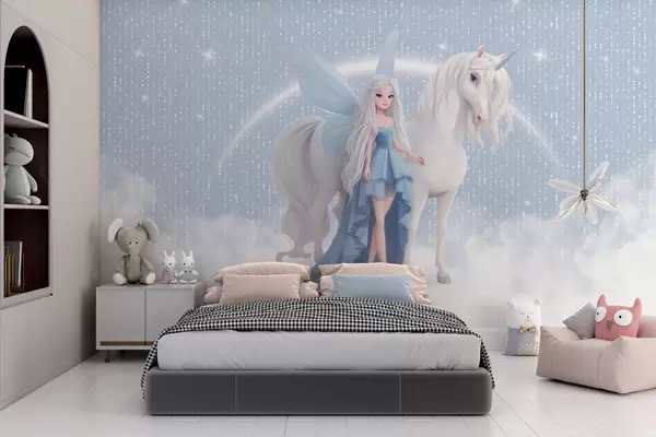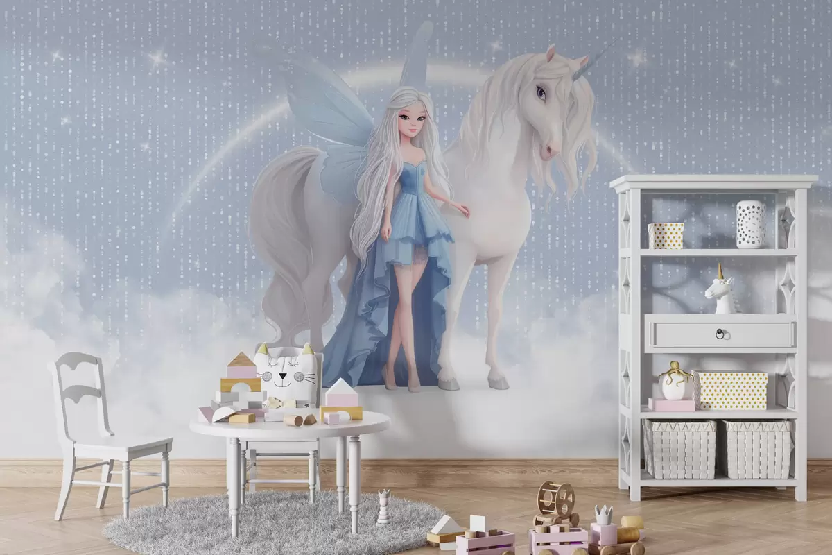 Fototapeedid Ükssarvikuga haldjas pilvede vahel Nr w03527v1