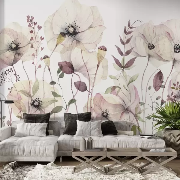 Fototapeedid Vesivärvilised metslilled pehmetes looduslikes toonides w03543