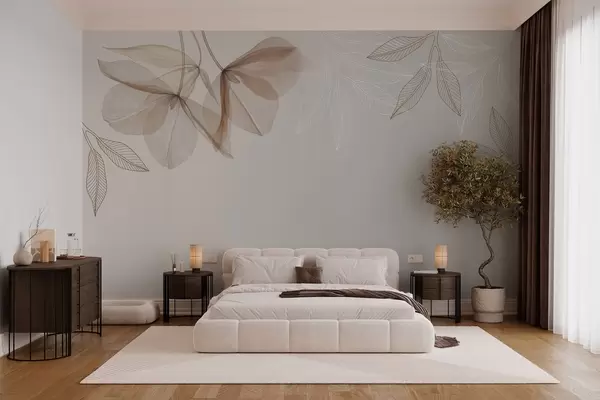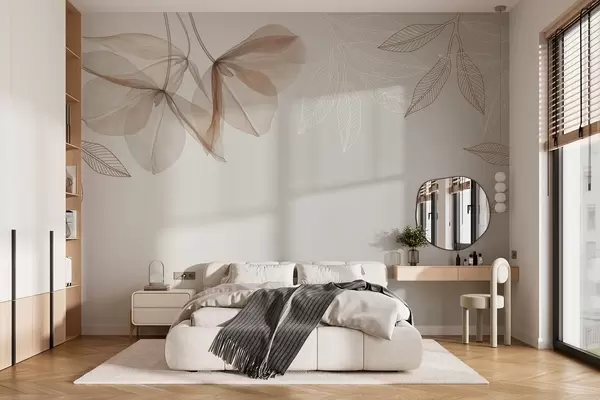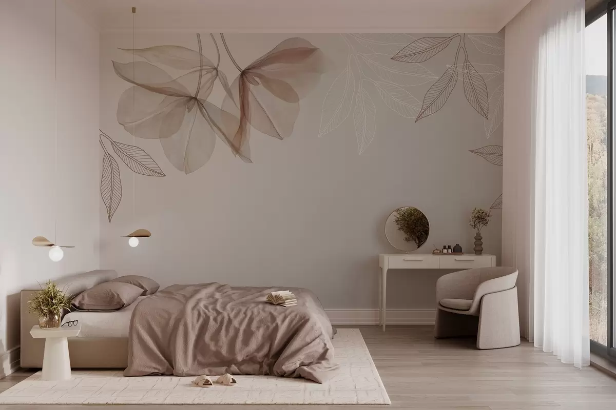 Fototapeedid õrnad läbikumavad lilled ja lehed moka toonides Nr w03616v3