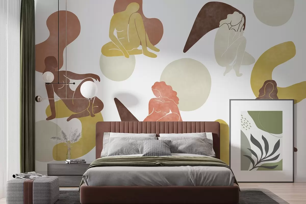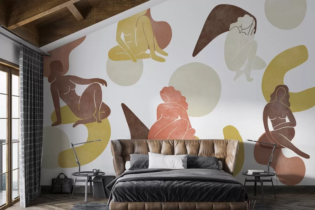 Fototapeedid Geomeetrilised abstraktsioonid naiste siluettidega, boho stiilis, pruun, beež, kollane Nr w03753v2