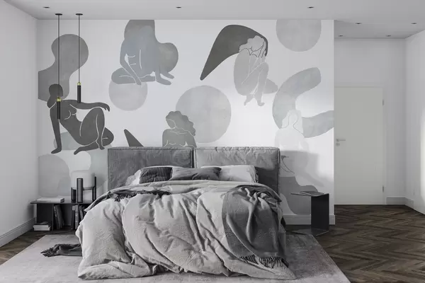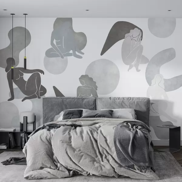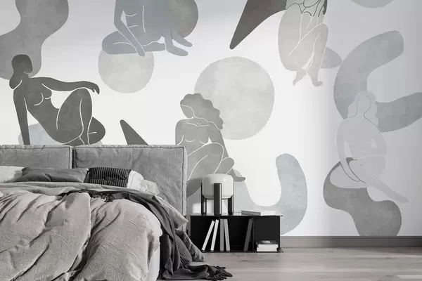 Fototapeedid Geomeetrilised abstraktsioonid naiste siluettidega, boho stiilis, hallid värvid Nr w03753v5