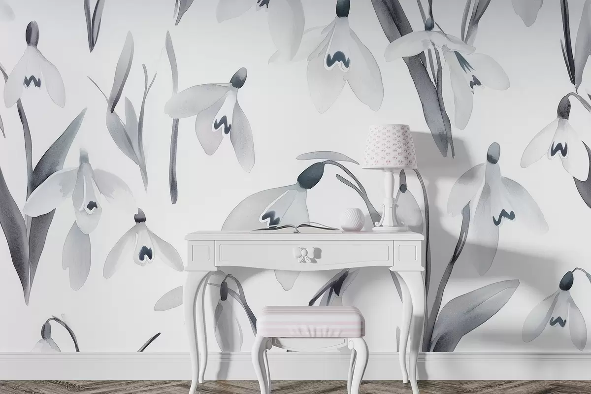 Fototapeedid Lumikellukesed lilled akvarellistiilis, hallid värvid Nr w03754v1