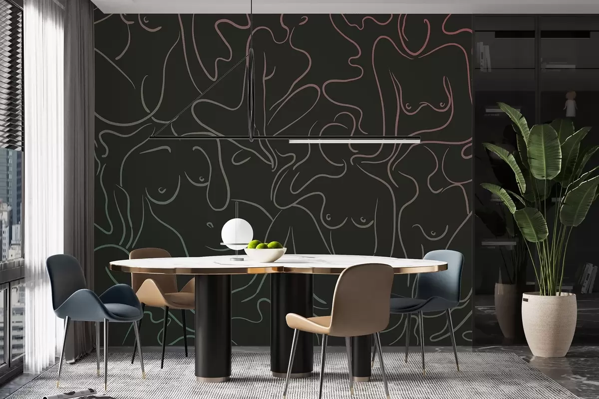 Fototapeedid Joonjoonistus anatoomilised siluetid, abstraktsioon, tume taust Nr w03755v2
