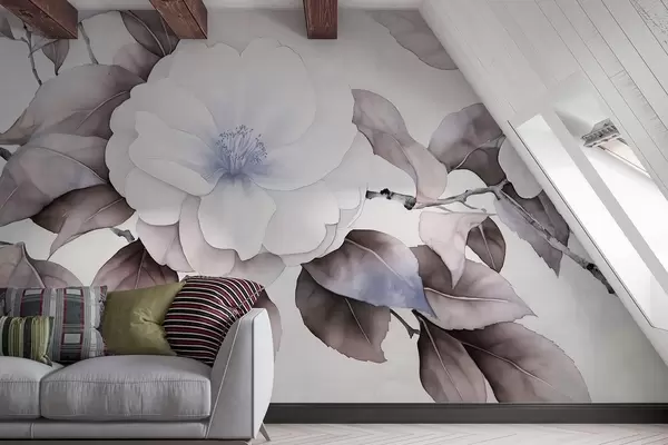 Fototapeedid Akvarellstiilis kameelia õied oksal, lillad värvid Nr w03761v1
