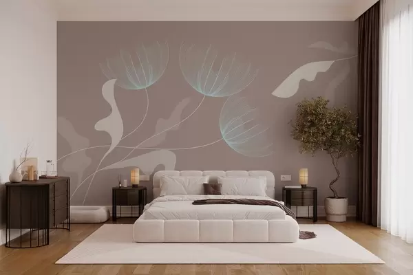 Fototapeedid elegantsed minimalistlikud lilled valgetes ja sinistes toonides moka taustal Nr w03763v3