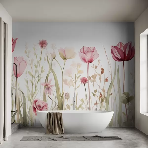 Fototapeedid Niidu pehmus,Tulbid, lilled, varred, lehed, metsikud taimed Nr w03785