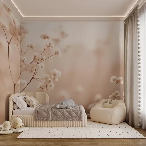 Fototapeedid Õrnad kreemjad kuivatatud lilled soojal taustal fookusest väljas Nr w03793