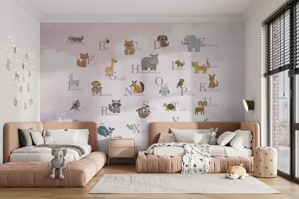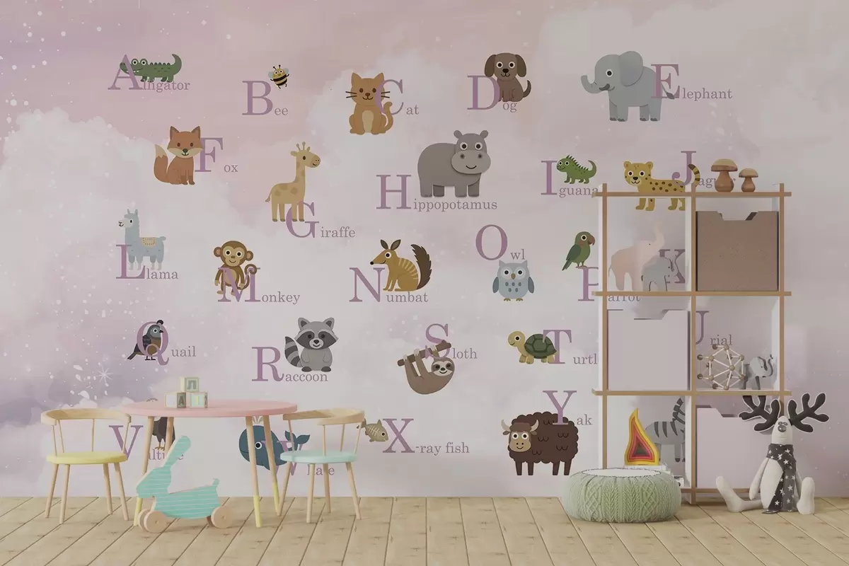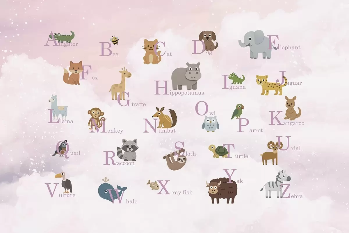 Fototapeedid Roosade tähtedega tähestik taeva taustal Nr w03810