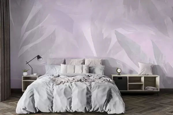 Fototapeedid Troopilised lehed, lillelised, palmipuud, pastelne stiil, lillad värvid Nr w03881v1