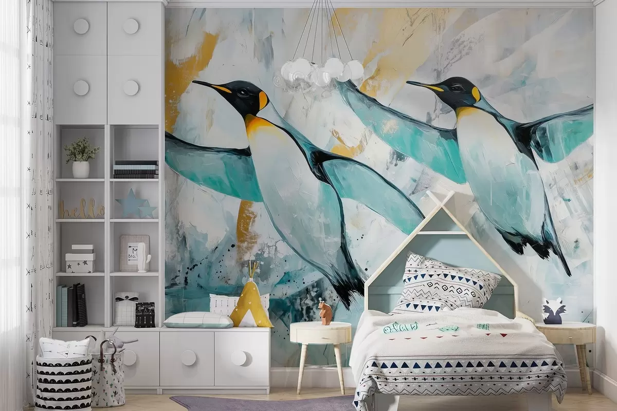 Fototapeedid Armsad pingviinid, Antarktika, sinine jää, loomad, õlistiilis joonistus Nr w03883