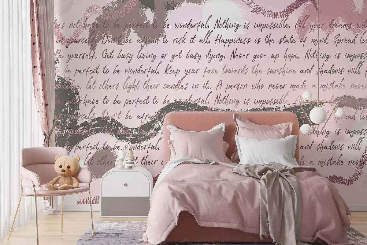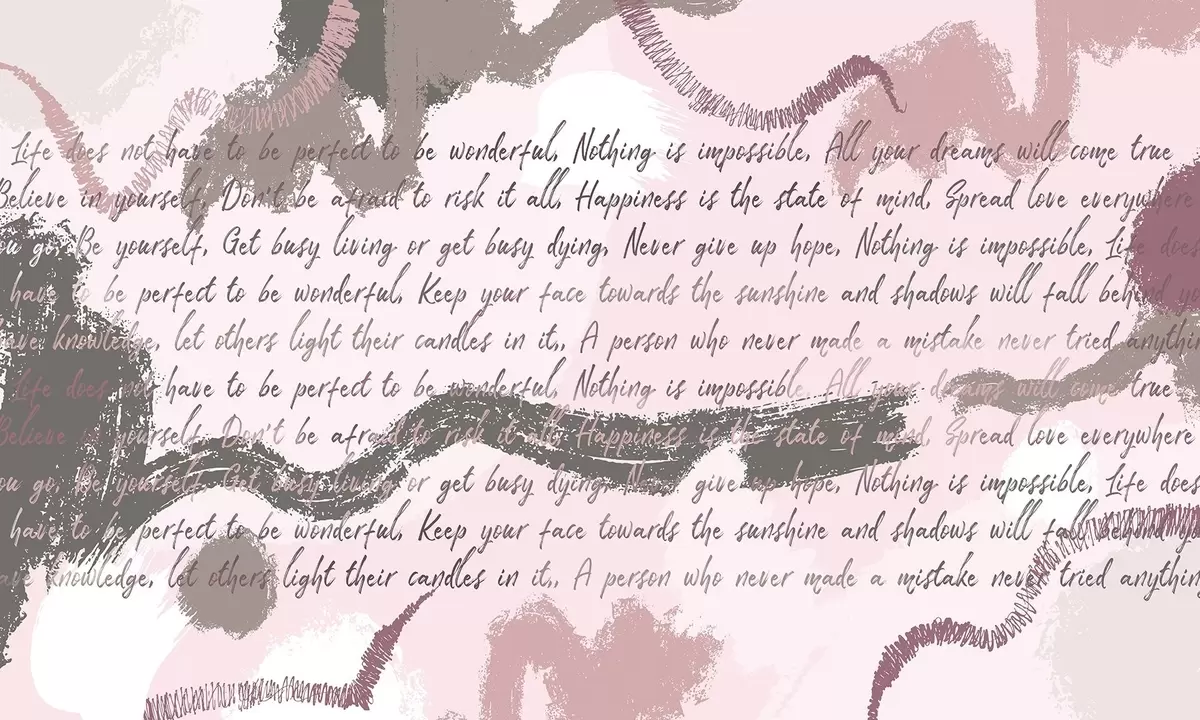 Fototapeedid Disain inspireerivate tsitaatidega, abstraktsioon, roosad värvid Nr w03909v3