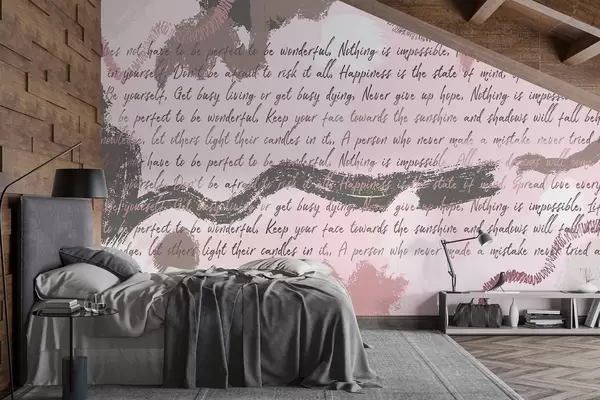 Fototapeedid Disain inspireerivate tsitaatidega, abstraktsioon, roosad värvid Nr w03909v3