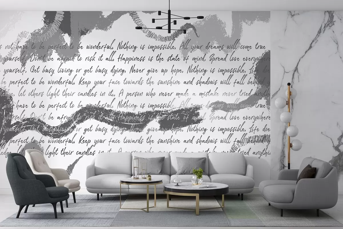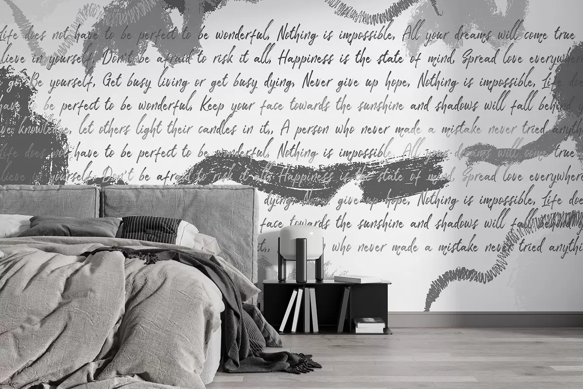 Fototapeedid Disain inspireerivate tsitaatidega, abstraktsioon, hallid värvid Nr w03909v4