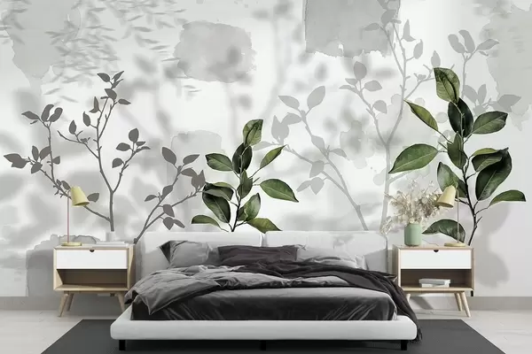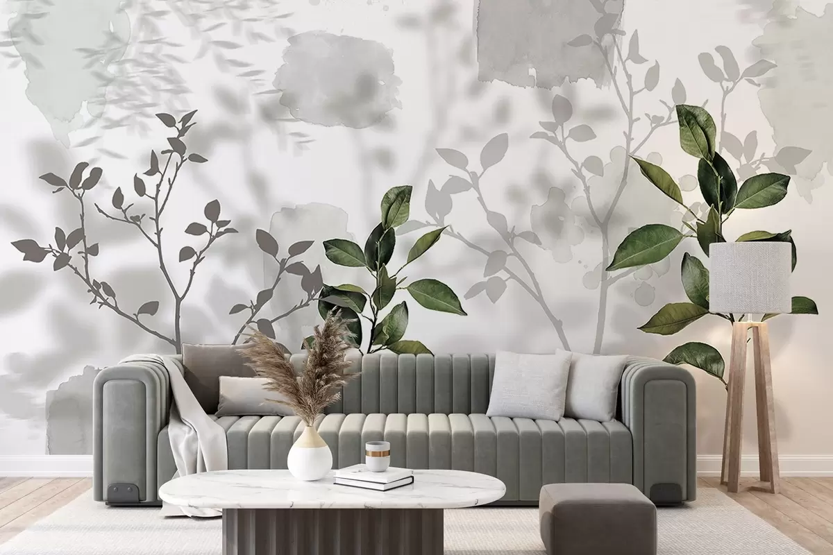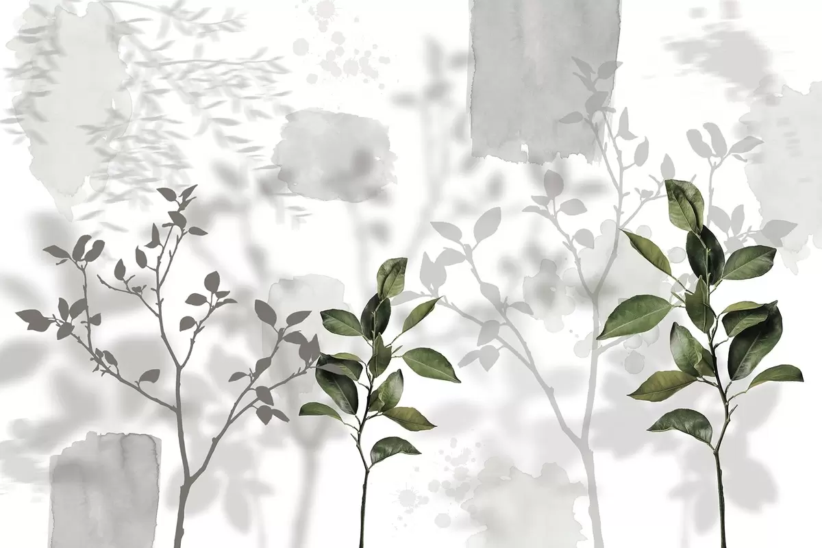 Fototapeedid Sidrunipuu lehed, puuoksade varjud, loodus, akvarell, roheline Nr w03910v1