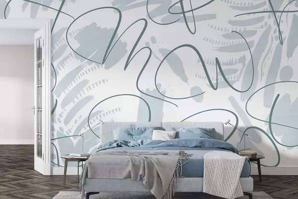 Fototapeedid Kalligraafiline abstraktsioon tähtedega, pintslitõmbed, sinine värvus Nr w03913v1