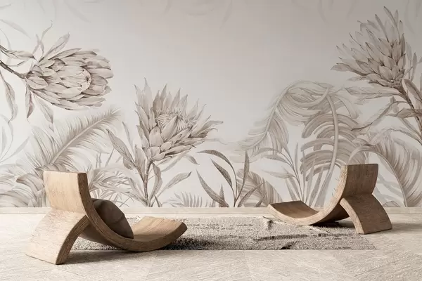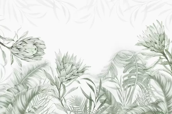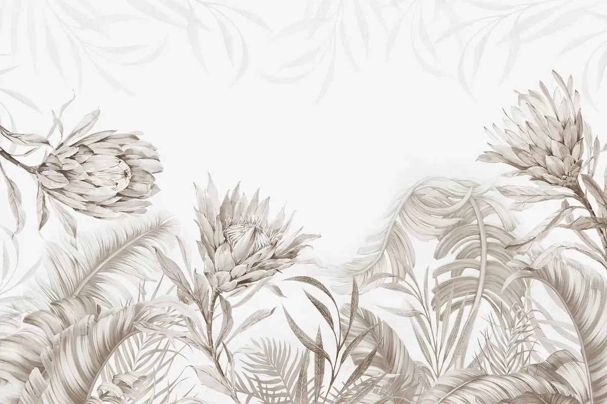 Fototapeedid Protea troopiliste lehtede vahel, beežid toonid Nr w03952