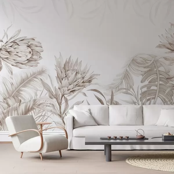 Fototapeedid Protea troopiliste lehtede vahel, beežid toonid Nr w03952