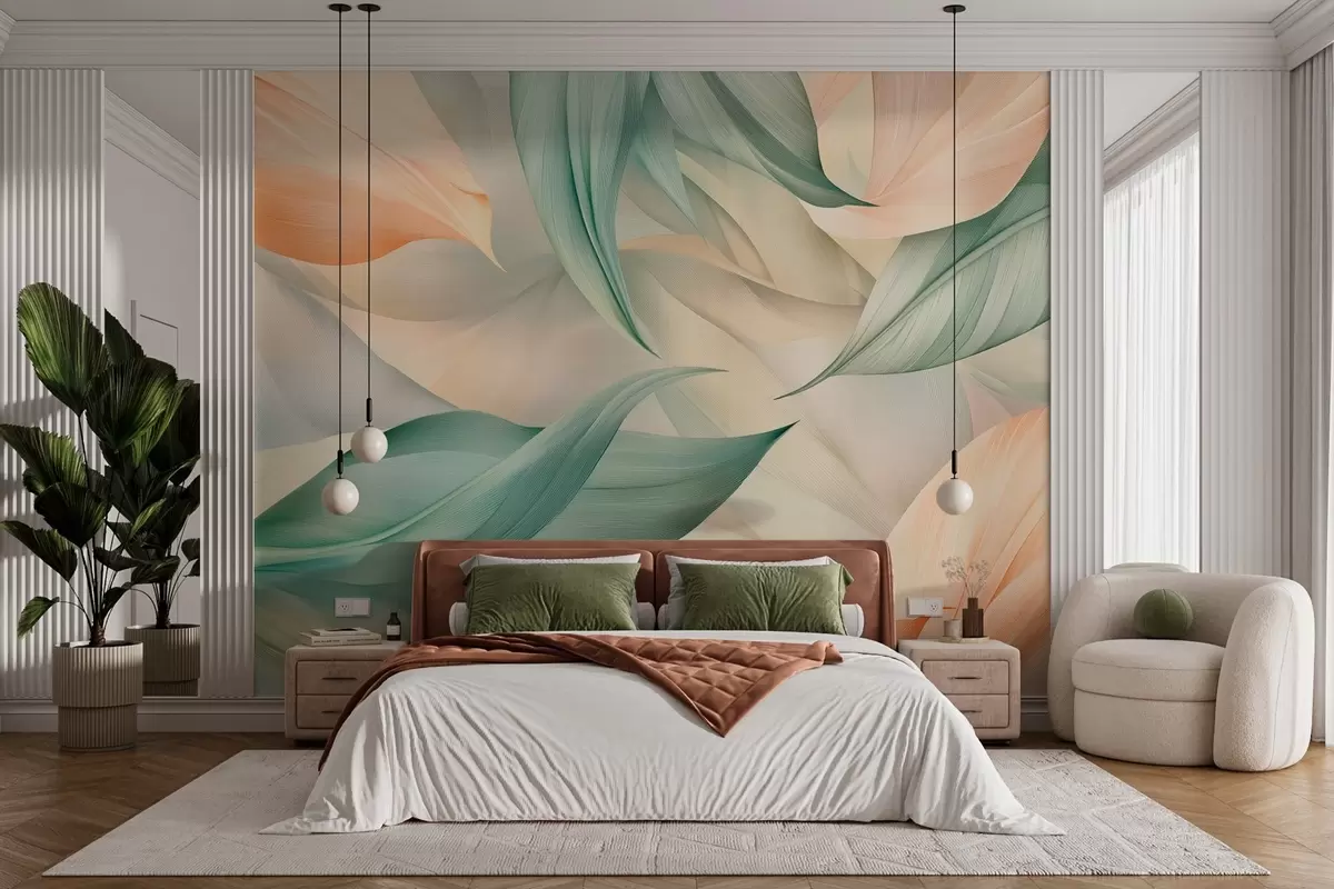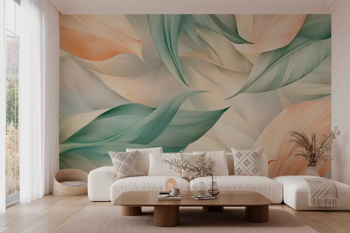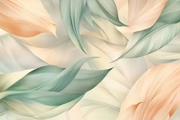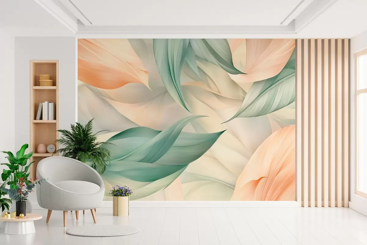 Fototapeedid eksootilised troopilised lehed õrnades virsiku ja roheliste toonides Nr w03962