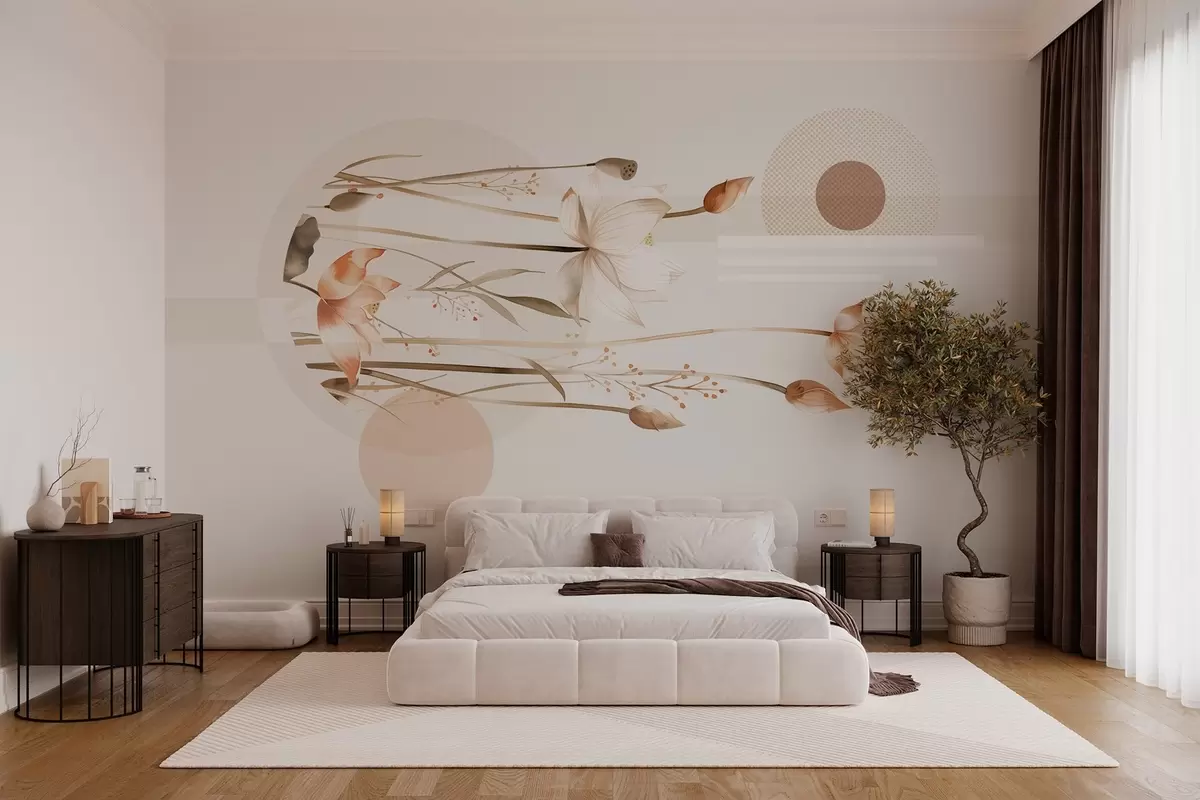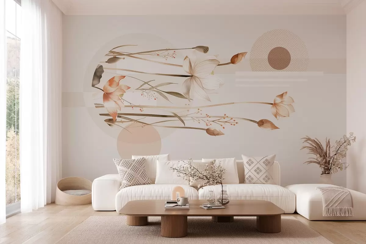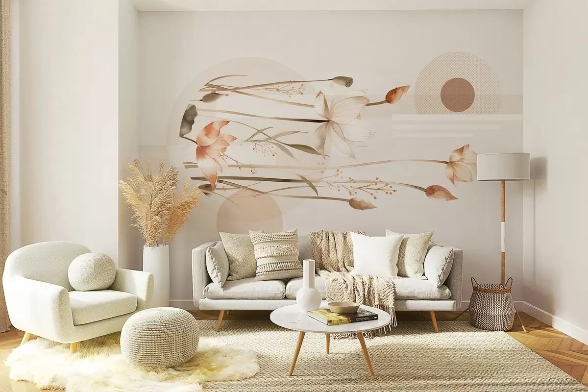 Fototapeedid pastelsed liiliad ja boho geomeetria Nr w03964