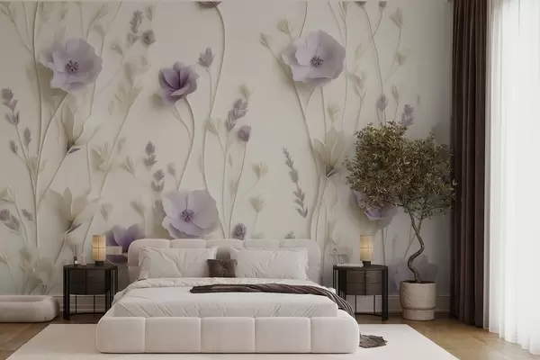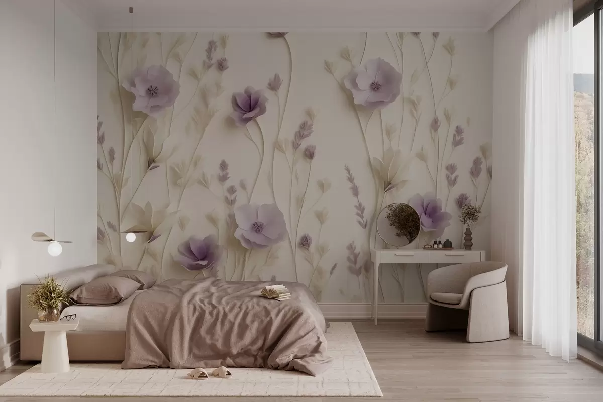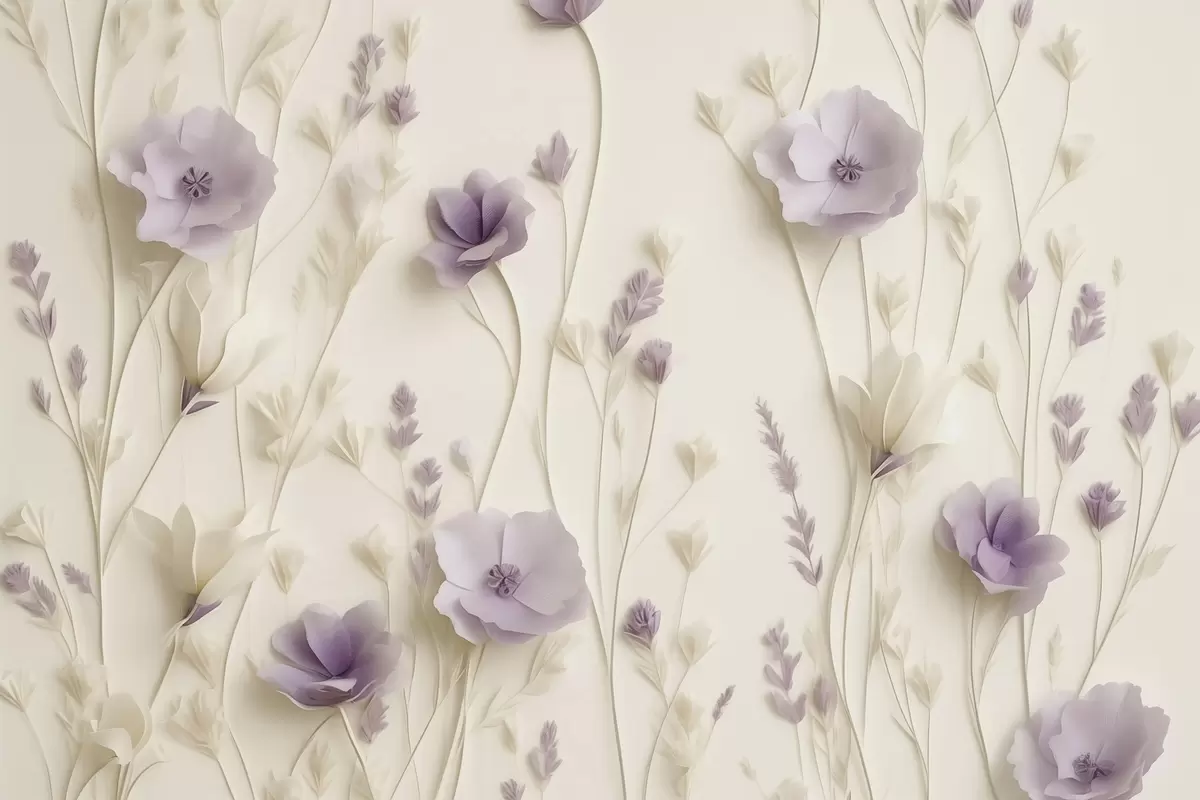 Fototapeedid Õrnad lillad lilled kreemvalgel taustal Nr w03993
