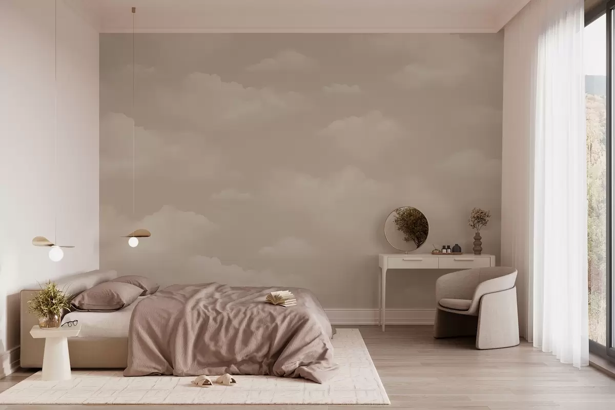 Fototapeedid Kreemjad pilved helebeežil taustal Nr w03994