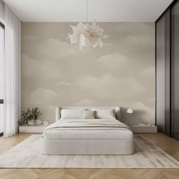 Fototapeedid Kreemjad pilved helebeežil taustal Nr w03994
