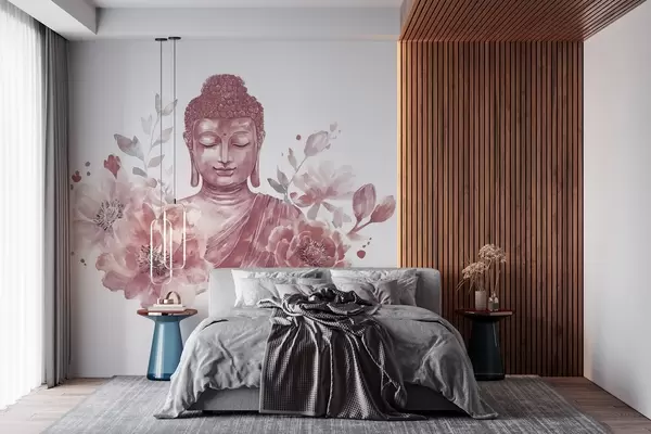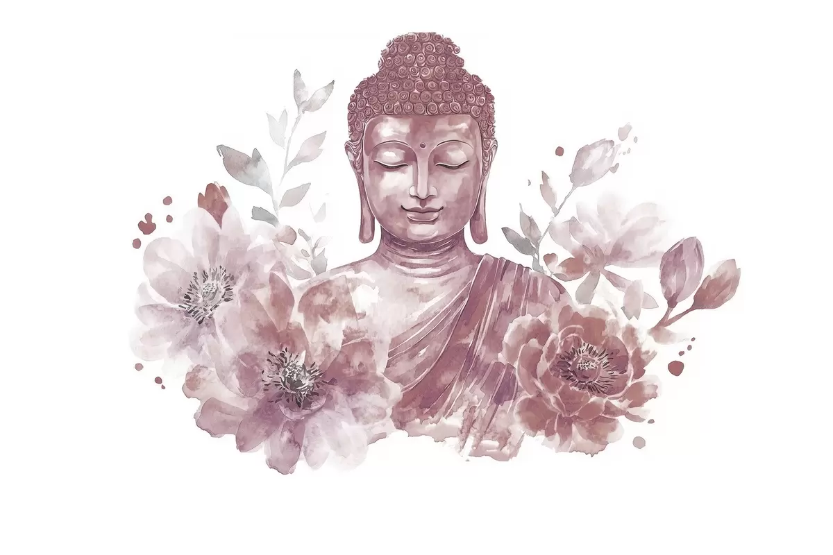 Fototapeedid Akvarell Buddha lilledega, vaimne, burgundia värvipalett Nr w04005v2