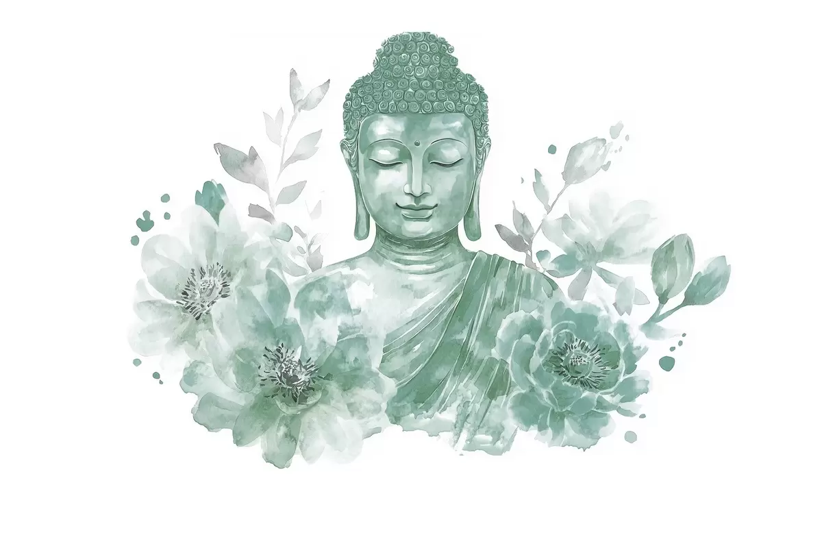 Fototapeedid Akvarell Buddha lilledega, vaimne, roheline värvipalett Nr w04005v3