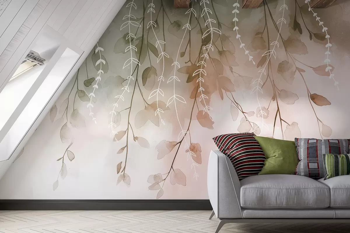 Fototapeedid Oksad koos lehtedega akvarellistiilis, looduslikud sügisvärvid Nr w04007v1