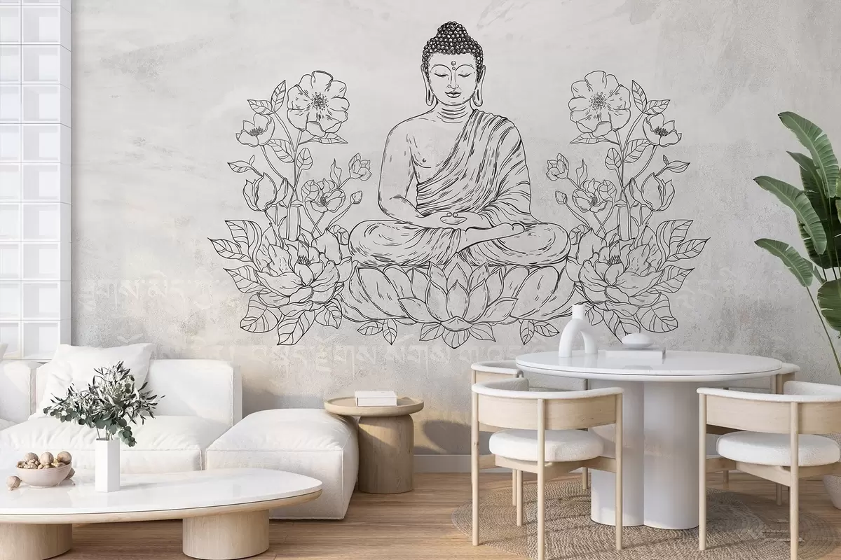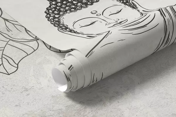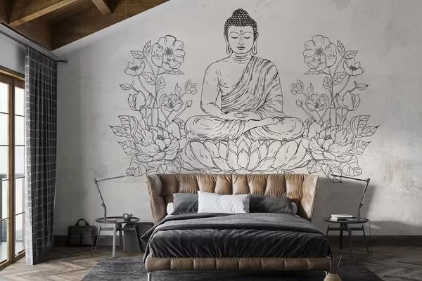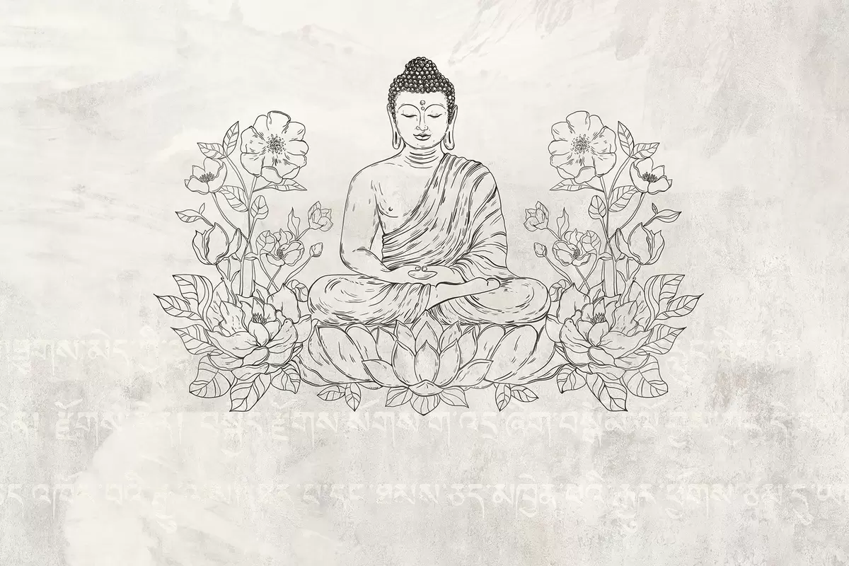 Fototapeedid Mediteeriv Buddha koos lootoslilledega, joontehnika, idamaine, beež taustaga Nr w04008v1