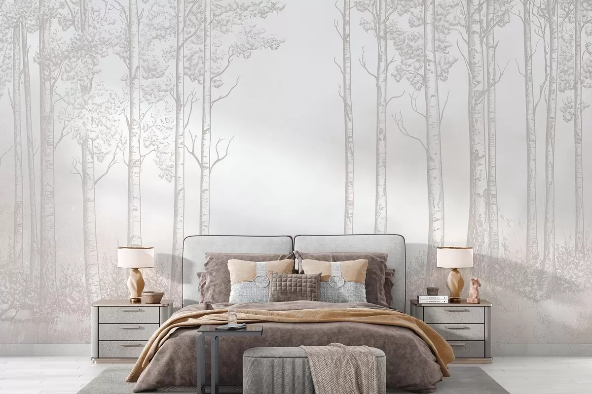 Fototapeedid Mets koos kaskedega, minimalism, loodus, beež värvipalett Nr w04009v3