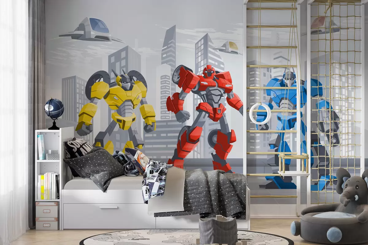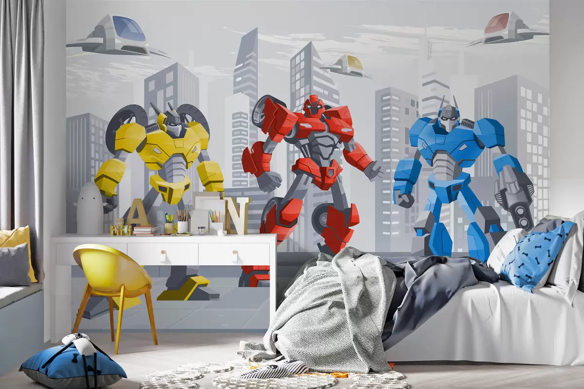 Fototapeedid Transformer-robotid ühevärvilise linna taustal Nr w04012