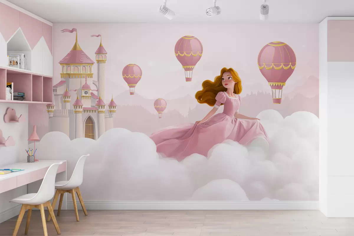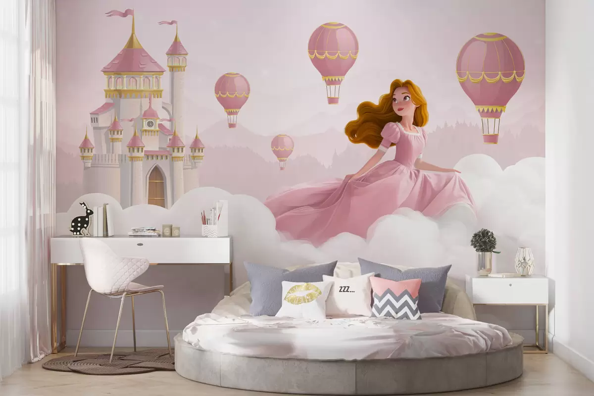 Fototapeedid Printsess pilvede keskel maastiku taustal koos lossiga Nr w04015v1