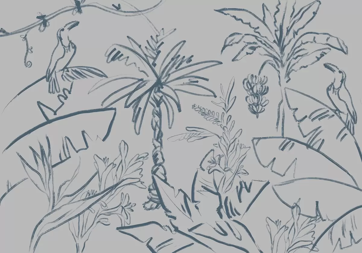 Fototapeedid Troopiline muster sinise värviga, banaanid, palmipuud Nr w04020v1