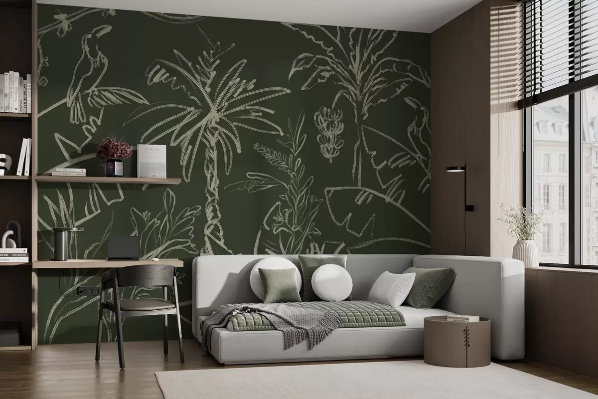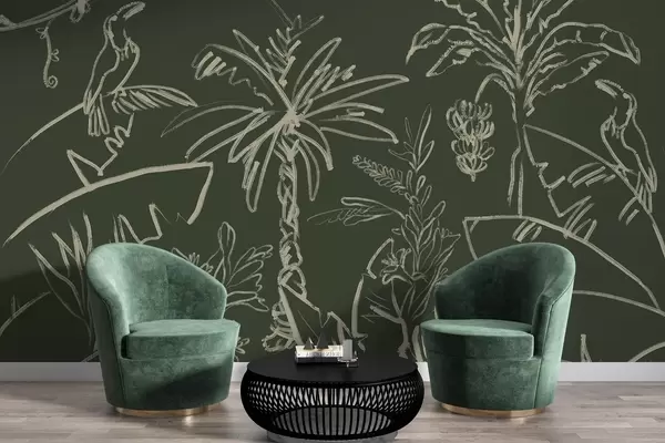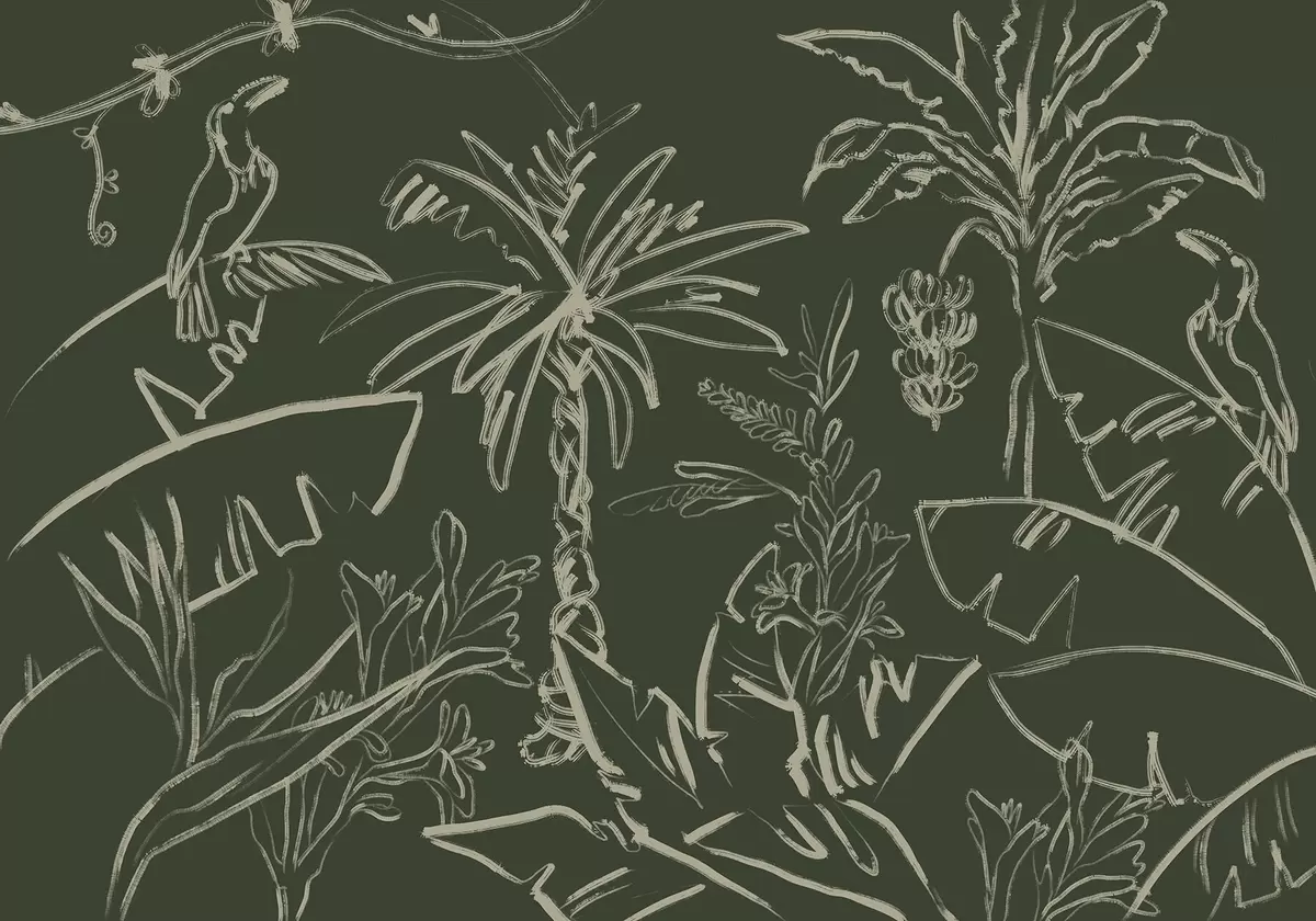 Fototapeedid Troopiline muster tumerohelisel taustal, palmid, banaanid Nr w04020v5