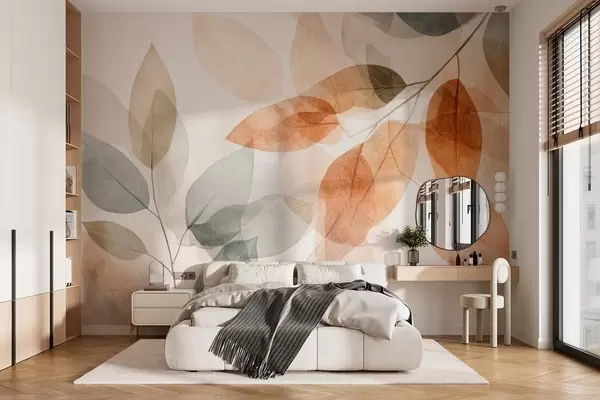 Fototapeedid vesivärvi stiilis lehed seepia ja halli toonides w04024