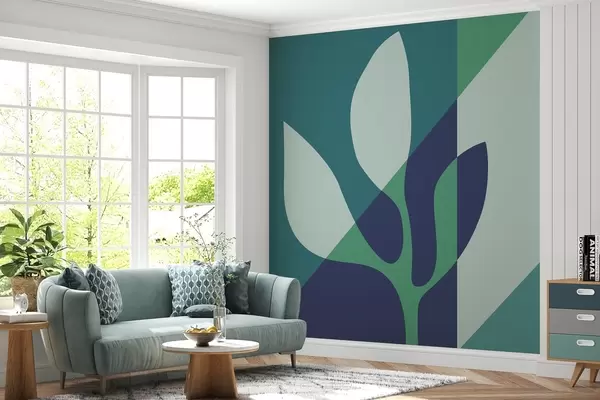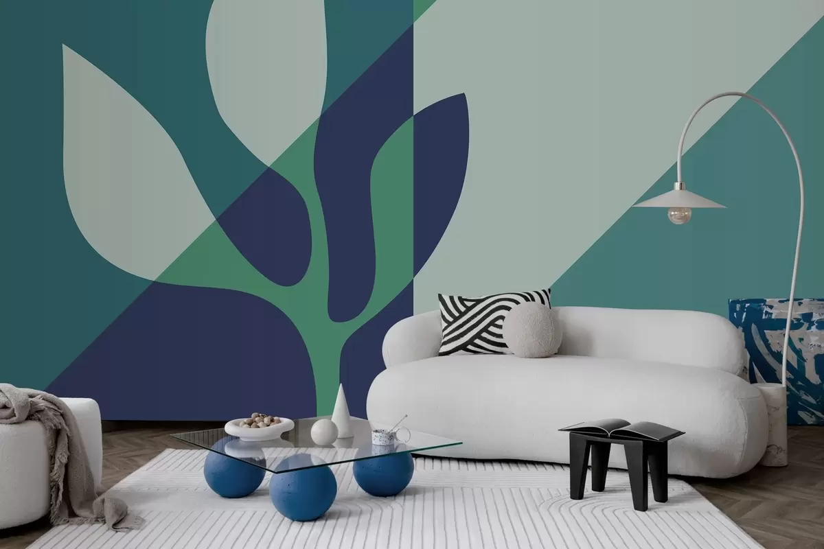 Fototapeedid abstraktne graafiline taim geomeetria taustal sinistes toonides Nr w04028v1