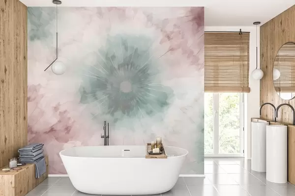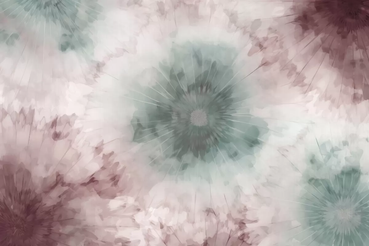 Fototapeedid Vesivärvi radiaalmustrit, milles segunevad udune roheline ja tolmune roosa, meenutades hommikukaste pehmust ja päeva esimest hingetõmmet Nr w04036v2