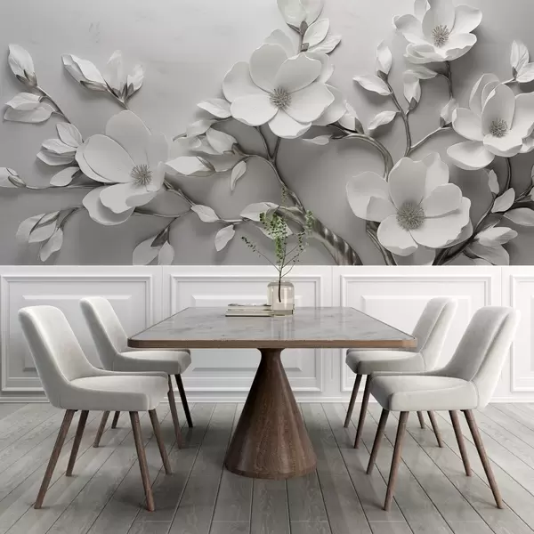 Fototapeedid Mõõtmeline lilleharu puhtast valgest ja neutraalsetest toonidest Nr w04039v2