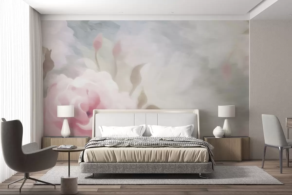 Fototapeedid Pööni lilled hägusel taustal Nr w04046
