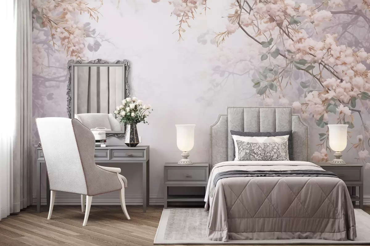 Fototapeedid Õitsva puu oksad udus Nr w04062